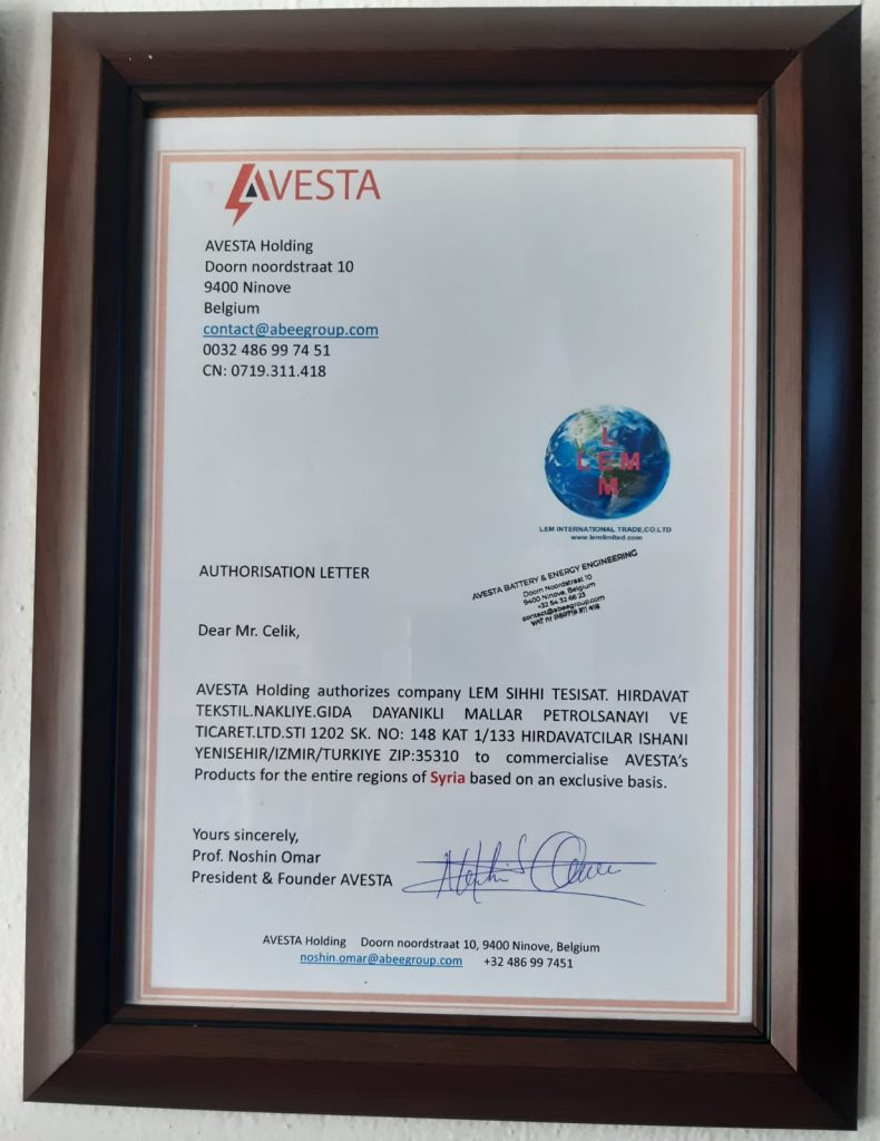 Suriye Distribütörlüğü Sertifikası